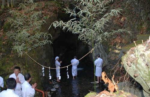 出流山万願寺奥の院「大悲の滝」で滝行をし、身を清めたあと、