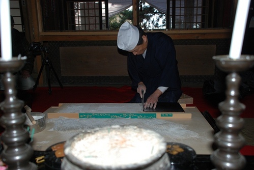 本堂で、護摩祈願、奉納蕎麦打ちをし、