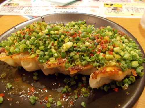 【焼き餃子】餃子に塗ってある味噌ダレとネギの相性が抜群!