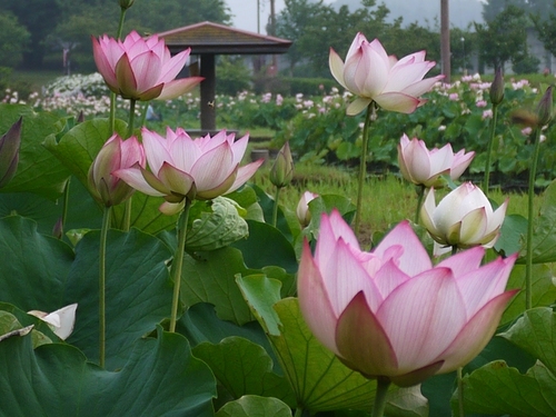 約1,000株のハスの花が、梅雨の季節を彩ります。