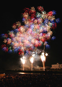 尺玉の連続打上げやワイドスターマインをはじめ、