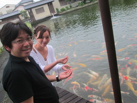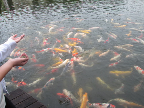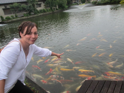 えさをやり始めると、次第に遠くから泳いで近寄ってきて、 気づけばたくさんの鯉たちがこちらにきてくれました! ![]() えさやりでテンションアゲアゲの茜ッティ(笑)