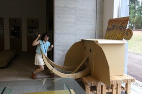 早速!行列のできている「トリックハウス」を発見~♪ なんでも、科学のトリックが沢山秘められているお部屋らしい・・! 中に入ってみたくうちゃん・・・ くうちゃん「きゃ~!!なにこれ~?????」 恐る恐るのびっくり体験ができたり、鍋を触ってみたり・・。 せま~いお部屋も^m^ 不思議のトリックネタあかしは、出口にあるので すっきりもできます(*^_^*) ![]() 中でも!トリックハウスの中では、