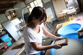 「和紙の里」さんは、自然あふれる環境にあるので、 とっても癒されます~♪ ![]() ちょっくら、私も体験・・・(*^_^*)