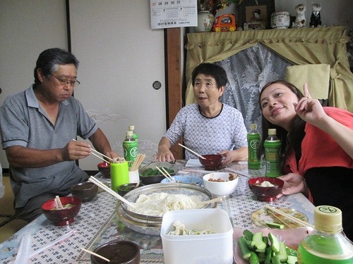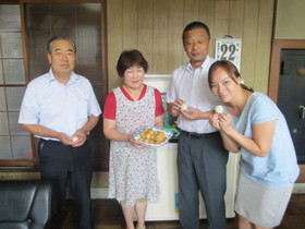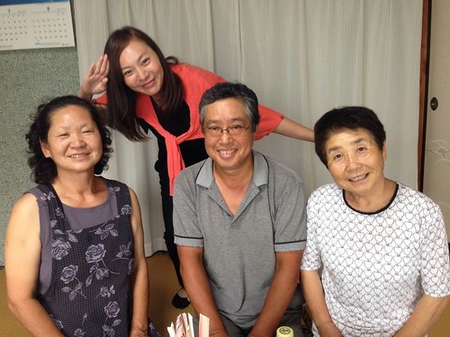 千恵子さんのお家のお庭から採ってきたものなんです! 新鮮でおいしいんです~☆ ![]() 山本さん夫婦とまつさんに囲まれて
