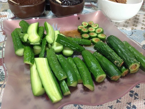 みそはもちろんのこと、キュウリも、 山本さんのお家の庭で採れたものなんです! 採れたてのキュウリに手作りのお味噌をつけて頂く。 幸せな気持ちになりました(*^_^*) |