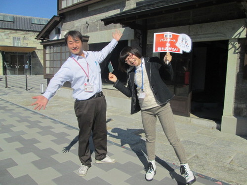 先月 10月23日にオープンしたばかり! 観光案内所や美術品展示館、レストラン そして観光物産館など・・・真岡の魅力が満載です。 風情があって素敵ですよぉ。 旅スタくぅちゃん さすが晴れ女! 澄みきった青空と建物の重厚さがマッチしていますよねぇ♪ ![]() 旅スタくぅちゃん パスポートを手に
