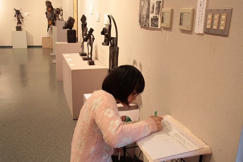 まずは「ガンダ彫刻」が展示されている棟に。 「ガンダ」とは、千葉県の東総地方で 建築廃材や古い農機具などの使えなくて捨てられた鉄くずの事だそうですよ。 その「ガンダ」をいくつか組み合わせて、動物や人物が作られていました。 よく見ると、鍬(くわ)や鋤(すき)、つるはしや斧(おの)などを発見! 「へぇ~、すごいなぁ~」 作品はまさに命が吹きこまれて、表情豊か! ![]() 作品の中で3点に「名前を付けてください!」と・・・・