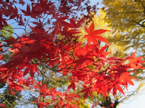 燃えるような赤・光かがやく黄色・・・・・ 旅スタくぅちゃん、目はもう真っ赤な紅葉に吸い込まれていくぅぅぅ・・・! 「わたし紅葉の真っ赤なじゅうたんの上にいま~す!」 まさに“レッドカーペット”の上を歩く女優になった気分だった(かな?) 今年の紅葉は終わってしまいましたね・・・・ また、来年お目にかかるのを 楽しみにしてま~す(^・^) ![]() それもそのはず上の見上げると真っ赤な紅葉
