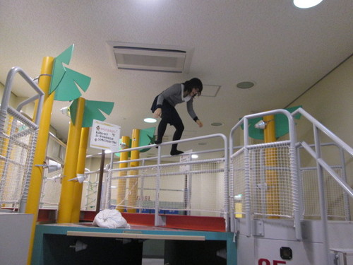 旅スタくぅちゃん、今度はすごいところに登っていますよぉ(^・^) ここも左右に赤外線が! 抱腹前進で行くか・・・と思いきや!! なんとまぁ、器用な旅スタくぅちゃん、なんなりとクリア♪ おもしろかったなぁ(^・^)V ![]() 最後にはまったのが、ピンポンのボールのような玉がいろいろなからくりをクリアして