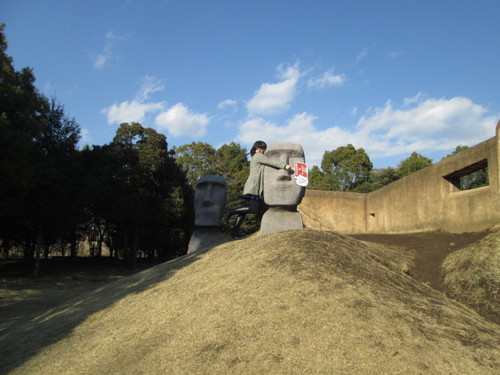 お外も気持ちよかったぁ ふしぎの船の前に広がる「?はてなの広場」です。 ここがとちぎわんぱく公園でもっとも謎に包まれているスポットだそうですよ(笑) どうしてこのモアイ像が出現しているのか・・・・ 日々、何も語らず、じっと黙っているそうですよ。 旅スタくぅちゃん、なんだか、お気に入りに!ハグしちゃってます! ![]() おっと、大切なミッションを達成しないと!!