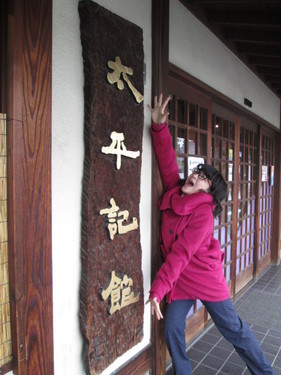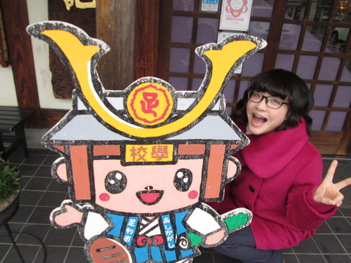 足利学校の学校門と足利尊氏(あしかがたかうじ)公のかぶとの帽子(#^・^#) なんともいやされますねぇ♪ 旅スタくぅちゃん、一緒に“ハイ チーズ” ![]() スタッフの「永田 実奈美」(ながた みなみ)さんに
