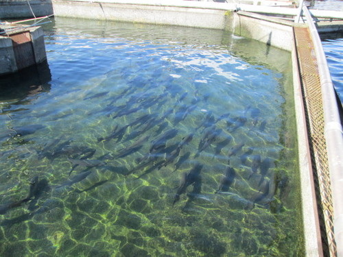 鮎、イワナ、鰻、ヤシオマスなど、淡水魚の養殖から加工を行っています。 今回は、その中でもオリーブヤシオマスに注目!! ヤシオマスは、栃木県の水産試験場で開発されたニジマスの改良種です(・ω・)☆ ![]() 荒川養魚場で元気に育つヤシオマスは、