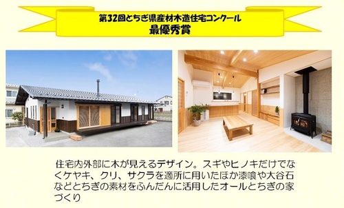 第32回とちぎ県産材木造住宅コンクール 最優秀賞 ![]() 第29回とちぎ県産材木造住宅コンクール 優秀賞 ![]() |