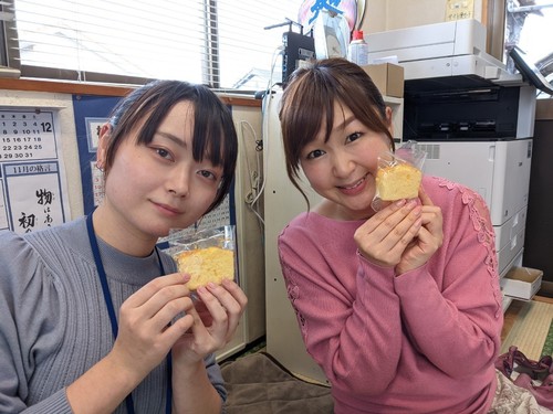 「協力して地元を盛り上げよう」 と意気投合したのがきっかけで誕生しました! クッキーやスポンジケーキを使った お菓子などの試作を1年ほど続け、 しっとりとした食感のパウンドケーキの 商品化に行き着いたそうです。 まろやかで、さっぱりとした口当たりが特徴。 材料の酒かすの風味を生かしながら、 日本酒を日常的にたしなまない人にも 親しんでもらえるよう心掛けたそうです。 でもお酒好きの人に人気なのだとか・・・! お酒と一緒に食べても美味しいし、 日本茶と合わせてもおいしいですよ♪ ![]() 12月には酒粕ケーキとお酒のセットを