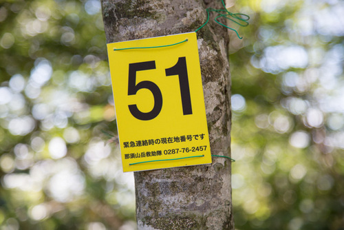 万が一の時のために・・・那須連山の登山道の所々に、「緊急連絡時の現在地番号」があります。