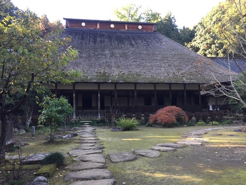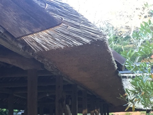 こちらを見るには、事前の予約が必要です。薄暗い中に、ほわ~~~んとあらわれるその姿は、是非、皆さんもご自分の目で見てみてくださいね。 ![]() 全てが茅葺きで、静寂が保たれて、素朴なたたずまいがこのお寺の魅力です。 今特に本堂は遠くから見ても大きいですが、 真上からみたら、サッカーコート一面分くらいありそうな茅葺屋根です。