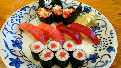 新鮮な魚が売りで、毎日 築地から 直送してもらっているそうです。 ネタの種類も豊富で、常時40種類ほどの 新鮮なネタがずらりと用意されていますよ。 ![]() 特に、大将の1番オシが、「まぐろづくし」♪