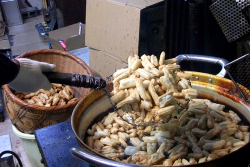これが、揚げもちの他に、スルメイカを揚げたものも袋に入っていて、封を開けた瞬間から イカの香りが漂います。更に、一口入れれば 揚げもちにイカパウダーがまぶされていることから 口の中一杯に イカのおいしさが広がり、まさに お酒のおつまみにサイコーの商品です!! 番組ディレクターも大好きな1品です♪ また、化学調味料を一切使用していない 昔懐かしい「田舎シリーズ(全4種類)」。 「田舎のじじいが揚げました」は、塩味。 「田舎のばあばが揚げました」は、醤油。 「田舎のとうちゃんが揚げました」は、ピリッと辛い唐辛子。 「田舎のかあちゃんが揚げました」は、甘い甘ダレ。 これは、お供え餅を揚げたような 昔懐かしい 食感がしっかりしたもの。噛み応えがあります。 こちらも全種類 食べ比べしたくなるハズですよ。 書いているそばから またまた「駒場屋」さんの揚げもちを食べたくなっている私・・・。 可能ならば、全種類制覇してみたい。きっと、そんなことを思う人も多いはず。 そこで、そんなアナタに朗報が!! 「駒場屋米菓」さんは、毎月1日と15日は「特売日」となります。 ①大袋の商品が 通常1袋 ¥365 → 3袋 ¥945(¥150もお得!) ②揚げもち 久助が・・・、 通常3袋 ¥1050 → 5袋 ¥1050 数量限定(なくなり次第終了とさせて頂きます) *特別価格での販売は、直売店でのお買い上げ時に限ります。ご了承下さい。 ちょうど、来週火曜日が「特売日」となりますので、ぜひ足を運んでみてはいかがでしょうか? ![]() 1月下旬に バレンタインデーに因んで限定販売される「もちチョコ」と