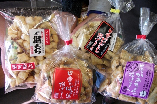 こちらでは、揚げもちをメインに、店内には ざっと30種類以上のお煎餅たちが並んでいました。 あれもこれも全ておいしそう・・・。 人気ランキングも書かれていましたが、 NO.1は、「チーズ揚げ」 NO.2は、「ねぎ味噌」 NO.3は、「揚げもち 塩」 だそうです。 実は、私もこの人気NO.1の「チーズ揚げ」が大好きです!! ちょっとのつもりが 気付くと 1袋ペロッって食べちゃうんですよね。 止まらない、止まらない。あとひき率、200%(笑) しかも、食感が軽いんです。これがまた、いいんですよねぇ。 チーズだけでも5種類もあるんですよ! 「チーズ揚げ」を作るキッカケを作ってくれた3代目の息子さんに感謝したいぐらいです! 何でも息子さんが幼少の頃、チーズが大好きだったそうで、「チーズのお煎餅があったらいいのに」と 何気なく言った一言で お父様がこの「チーズ揚げ」を完成させたそうです。 この他、何気ない日常からヒントをもらったりして、様々な味が完成しているそうですよ。 すごいですよね。 ![]() そして、今回ご紹介頂いた「冬限定商品(3月まで) イカ揚げ」。