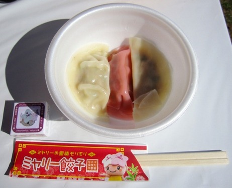 ありましたが、皆さん 何とかそれぞれの餃子を焼き上げることができました。 男性陣も含め 普段から 餃子を焼いているという、皆さん。 対決の結果は、東京からお越し頂いた「ゆうこさん」が優勝!! 普段、餃子の皮に餡を包む作業からされているとのことで、主婦の代表として見事優勝されました。 平塚専務曰く、上三川町から参加された「大塚さん」も 僅差で 2位に・・・。 大塚さん、とっても悔しがっておりました・・・。 「対決」は、皆さん 大いに盛り上がりまして、中には 焦げ餃子を作ってしまったり、 とてもキレイに焼き上げたけど 惜しくも・・・という方など、本当に 楽しみながら 参加して頂きましたよ。 ![]() そして、「ミヤリー餃子」を販売していた「天狗茶屋」。