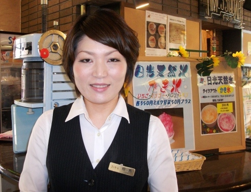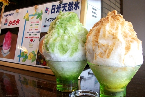 日光 松月氷室さんの天然氷を使用した「かき氷」は、きめが細やかで透明感があり、食べるとフワッと柔らか♪ 種類は、イチゴ・メロン・レモン・抹茶・ハワイアンブルー・マンゴー(それぞれミルク付あり) (¥350/抹茶のみ¥400)(ミルク付 +¥50) そして、「健康」をコンセプトに考案された今年の新作かき氷は「和菓子感覚のきなこ(黒蜜付)」と 「意外とおいしい青汁」(数量限定)(¥600)です! ![]() この「かき氷」、見てビックリ!!