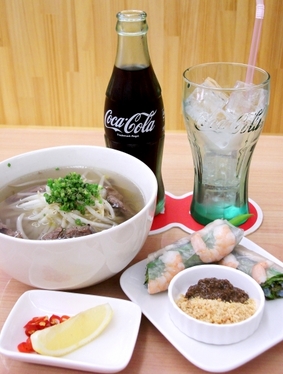 牛肉のフォー、生春巻き、えびせん!! お店ではセットメニューがありまして、「フォー&生春巻き(2ケ)&ドリンク」で¥850!!なんです。 フォーは、シナモンの香りと牛肉楽しめる サッパリしたものです。 味はしっかりしているのに、サッパリしているっていいですよね。 パクチーなどは、苦手な方も多い為、省いているそうです。 そして、生春巻きは、豚肉・エビ・レタス・はるさめが入っています。 本来は、ビーフンが入っているそうですが、あえてカロリーを低くするために、はるさめにしているそうですよ。 そして、この生春巻きに付けて食べるたれが絶品!! 「鶏肉のレバーを使った茶色のたれ」と「ピーナッツを砕いた粉末」が 小皿にのっているんですが、それをよく混ぜて、「生春巻き」につけて食べると、 甘みとピーナッツの食感がたまらなくおいしくて、何個でも食べられちゃいます。 レバーが苦手な人でも レバーだとわからないおいしさなので、おススメですよ~。 ![]() また、オリオン通りは 学生も多いことから、「サイゴン・カフェ」では