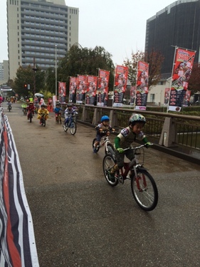 “シクロクロス”って、みなさん ご存知でしょうか。 シクロクロスとは…、もともとは ロードレース選手の 冬(オフシーズン)のトレーニングの一環として、 1900年代のはじめにフランスで始まったという、 オフロード(舗装されていない道)を利用した 自転車競技です。 レースは、短い距離の周回コースで行われて 自転車で泥の上を走ったり…、障害物を超えたり…、 時には 自転車から降りて 階段を駆けのぼったりと、 見どころが多く、観客を飽きさせない、エキサイティングな競技となっています! 世界的には ヨーロッパ、とくに ベルギーやオランダ、 チェコなどで盛んな競技ということですが…、ここ宇都宮では、去年から、 10月の「ジャパンカップサイクルロードレース」にあわせて 大会が開催されるようになりました! 去年は、ジャパンカップの“プレイベント”的な要素が 強かったんですが、 今年からは、ひとつのシリーズとして独立。 10月10日・11日の2日間にわたって、「宇都宮城址公園」を会場に、 エキシビジョンレースと 各カテゴリーのレースが行われたんです! そして今回、僕がお邪魔してきたのは…、 2日目の 11日(日曜日)。 到着した時、空は あいにくの雨模様だったんですが 実は コレが、“シクロクロス日和”とのことで…!? ![]() …ずっと、体験してみたかった シクロクロス!