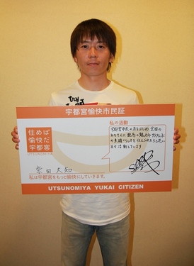 第137回「佐藤栄一宇都宮市長との雑談♪」毎月・最終週の「愉快な雑談」は、月に一度のお楽しみ、 佐藤栄一宇都宮市長との雑談!! 今回は、佐藤市長の、暑さ対策や夏バテ予防法、 そして、宇都宮の夏を彩るホットなイベント情報なども うかがいました! ![]() 詳しくは、ポッドキャストを聴いてみてね☆ ・夏を彩るホットなイベント情報・ ★2013うつのみや花火大会★ うつのみや花火大会 ★第38回ふるさと宮まつり★ ふるさと宮まつり ★ミヤリーのご当地キャラ激アツ盆踊り★ ・ミヤリーのご当地キャラ激アツ盆踊り@宇都宮市 ・ミヤリーのご当地キャラ激アツ盆踊り@宮カフェ その他、宇都宮の情報はコチラをチェック! HP:宇都宮市 ≪一口メモ≫ 市長はこの日、グリーンに朝顔柄の宮染めシャツでいらしたんですが、 日焼けした肌にとってもお似合いでしたよ(´ω`人)!! ![]() |