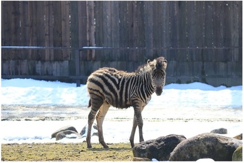 チャップマンシマウマはアフリカの南東部にオス1頭、メス数頭からなる 群れをつくって生息をしています。体重約250~350kg、体高は約130cmです。 体の色は白と黒の縞模様の間にカゲシマと呼ばれる灰色の縞が入っているのが特徴です。 警戒心の強い動物で天敵に襲われそうになった時は後肢で蹴ることがあります。 ![]() 那須サファリパークではチャップマンシマウマを5頭飼育していますが