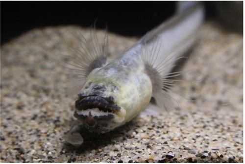九州の有明海の干潟に生息しており、普段は泥の中に潜んでいるため、 目は退化し皮膚の中に埋もれています。 また退化した眼や口から飛び出している牙、鱗が無く体が透けて見えるような ヌメっとした体は、まるで映画に出てくるエイリアンを彷彿とさせますが、 実際に餌をあげてみると必死に餌を探す様子や、オキアミをモグモグ食べる姿は とても愛らしいです。 ![]() 有明海では「すぼかき」という伝統的な漁具でとられ、主に干物や揚げ物などで