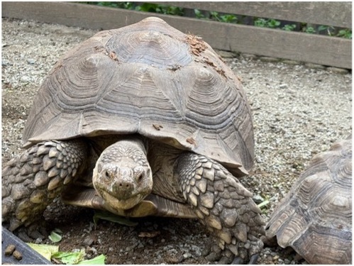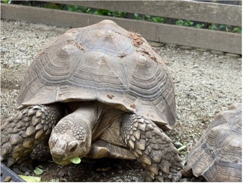 この日は2000年にアメリカのカメ保護会が制定。 カメに敬意を払い、保護のために人間の行動を促す日で、 まさに「カメ万歳の日」です。 ![]() 那須サファリパークでもケヅメリクガメ3頭を飼育・展示しており、