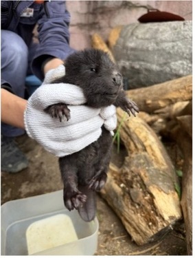 ![]() 嬉しいニュースとして、5月19日に体長約15cm、体重約160gのビーバーの赤ちゃんが誕生しました。現在は非公開ですが、泳ぎの練習が始まる頃に一般公開を予定しています。