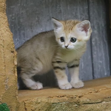 本邦初公開の赤ちゃん 「スナネコ」についてご紹介します! 【砂漠の天使】 そもそもは、「スナネコ」は、 別名「砂漠の天使」と言われるほど、 可愛らしい野生の猫です。 野生で、こんなに可愛らしいのが本当に居るの? というくらい可愛らしいです。 スナネコは、アフリカやアラビア半島などの 砂漠地帯に生息する世界最小種の野生ネコです。 大人の体重は、2~3kg程度。 野生では、昆虫や爬虫類 小型哺乳類を食べて生活しています。 【耳と足の秘密】 このスナネコの大きな特徴は耳と、足にあります。 この耳と足にはある秘密があります、、 砂漠地帯の気温は暑いですよね。 ですので、日中は熱い砂の上を歩くために、 足の裏の肉球が見えないほど毛が生えています。 また、大きな三角形の耳には、 毛が密集して生え砂が入らない仕組みになっています。 ![]() 日本でスナネコの赤ちゃんを展示するのは、