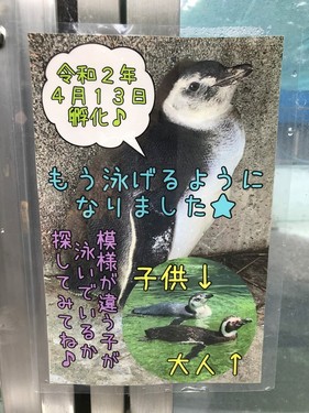 そんな頑張り屋さんなお母さんが、 赤ちゃんペンギンに付けてあげた名前は「れんげ」です。 この「れんげ」という名前は、 赤ちゃんペンギンの誕生日、 4月13日の誕生花でもある 「レンゲソウ」から付けられました。 「レンゲソウ」の花言葉に「心が和らぐ」という意味があり、 「この子を見たとき、皆の心が和らぐように」 という担当飼育員の気持ちが込められた 素敵な名前なのです。 今でこそ元気に成長しているれんげちゃんですが、 実は人工育雛中に生死の危機に陥ったこともありました。 そんな時、担当飼育員は「どうしよう、どうしよう」 と焦ってしまったそうで、 「どんな時でも落ち着いて冷静に対処できるように」 という気持ちも込められているのだとか。 まだまだ苦労は尽きないようですが、 れんげちゃんがペンギンプールで元気に泳いでいる姿を 皆様にご覧頂ける日が来るのが楽しみです♪ 赤ちゃんペンギンは、 親ペンギンたちと違ってふわふわの羽毛で生まれてきます。 それが成長とともに抜けていき、 親ペンギンたちと同じ模様になるのです。 羽が抜けていく途中の段階の赤ちゃんは、 頭やお尻に少しだけ残っているふわふわの羽が とってもキュートです♪ れんげちゃんと同い年の赤ちゃんペンギンは、 ペンギンプールで展示されていますので、 他のペンギンたちと一緒に泳いでいる姿も 見ることができるかもしれません! 羽が完全に抜け終わる前に、 他のペンギンたちとの区別がはっきり分かる今こそ、 赤ちゃんペンギンに会いに来るチャンスです! ぜひ、赤ちゃんペンギンに会いに宇都宮動物園にお越しください♪ 皆様のご来園、お待ちしております。 ![]() ![]() 一戸さん、ありがとうございました!