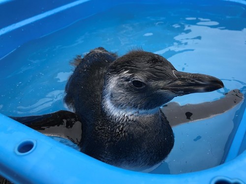 赤ちゃんペンギンは、 自分でエサを食べることができません。 親のペンギンが一度食べて細かくした魚を 口移しで与えることで、 赤ちゃんペンギンは お腹を満たすことができます。 実は、2羽の赤ちゃんペンギンのうち、 成長が遅かった赤ちゃんの親は、 なんと・・・ 赤ちゃんへの口移しがヘタだったのです…! このままでは赤ちゃんペンギンの命が危ない!と、 担当飼育員が 人工育雛(いくすう)を行うことになりました。 人工いくすうになった赤ちゃんは 両親の元を離れて 人工育雛に切り替えた赤ちゃんペンギンですが、 現在では体重が約3㎏で すくすくと元気に成長しています。 しかし、ペンギンの人工育雛はとても難しく 根気のいる子育てです。 エサやりは1日に4回で 1日に400gのマメアジを与えています。 朝一番のエサの時には 勢いよく食いついてモリモリ食べるそうですが、 回数を増すごとに食いつきが悪くなってしまうのだとか。 「食べてほしいのに、食べてくれない」 そんな不安の中で、 諦めずに根気強く赤ちゃんペンギンに寄り添う担当飼育員は、 立派なお母さんです。 ![]() 【赤ちゃんペンギン れんげ】