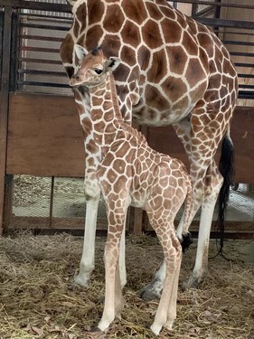 【アミメキリンのはるかちゃん】 まずアミメキリンなんですが、現在、宇都宮動物園では7頭のアミメキリンを飼育しております。その中でも、今年の1月17日に生まれたばかりの女の子「はるか」ちゃんをご紹介します。 はるかちゃんのお父さんはハツカくん、お母さんはメイちゃんです。 キリンの寿命は、野生下では10年~15年、飼育下では25年~30年だといわれています。 お父さんのハツカくんは1993年3月20日生まれ、今年でなんと27歳で恐らく国内最高齢のキリンになります。お母さんのメイちゃんは2002年5月27日生まれ、今年で18歳になりますが、はるかちゃんが9頭目の出産になるベテランママです。そんなビッグダディハツカくんとベテランママメイちゃんの間に生まれたはるかちゃん、生まれたときには170㎝程でしたが、今では2m以上になりすくすくと成長しています。 実は、はるかちゃんの名前は一般の方に付けて頂いた名前なのです。まだまだ元気ではありますが高齢になってしまったハツカくんや他のキリンたちのために、宇都宮動物園初の試みとして、キリンの赤ちゃんの名前を命名権販売という形で募集させて頂きました。この「はるか」という名前には「末永く健康であるように」「春に向かう季節の中で生まれたから」という素敵な意味が込められているそうです。たくさんのご応募、ありがとうございました!今後のはるかちゃんの成長を、皆様にも見守って頂ければと思います。 ![]() 【ベビーラッシュです!】