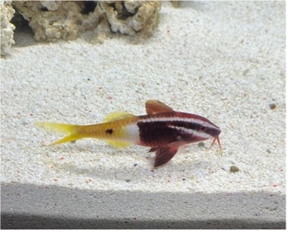 暖かく幻想的な空間できれいな生き物たちをご覧いただくことができます。 冬の企画展「ライトアクアリオ ロストクリスタル~暗闇に輝く生き物たち~」は洞窟をイメージし、ライトアップされた会場内には 光り輝くクリスタルの装飾がちりばめられています。 そのなかで、透明感のある美しい生き物たち 約20種200匹を展示しています。 その中からおすすめの生き物を紹介いたします🐟️ ![]() 1つ目がテンジクダイという海水魚の仲間たちです。